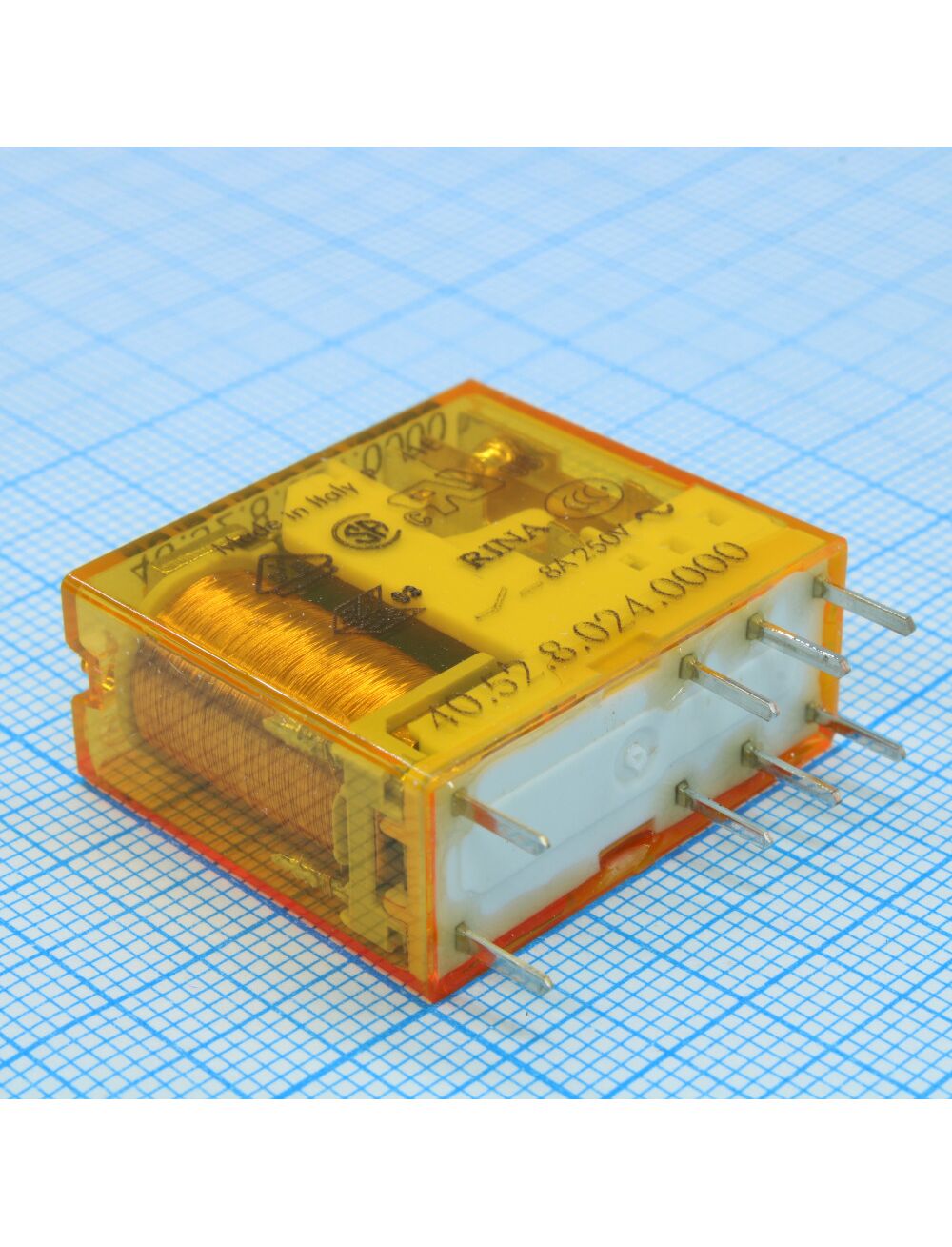 40.52.8.024.0000, миниатюрное универсальное электромеханическое реле; монтаж на печатную плату или в розетку; выводы с шагом 5мм; 2co 8a; контакты agni; катушка 24в ac; степень защиты rtii